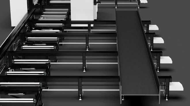 獨特的結(jié)構(gòu)設(shè)計,支持原料的整根切割12米上 / 下料 上料長度≤12500mm,實現(xiàn)零尾料切割,型材利用率高