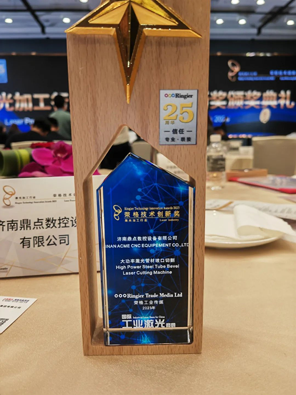2023年4月26日,由榮格工業傳媒舉辦的2023激光加工行業-榮格技術創新獎頒獎典禮在上海盛大召開,來自獲獎企業、評委團代表、行業主流媒體及專業買家等諸多專業人士集聚一堂,總結創新成果,共話未來。歷時4個月,經過專業評審,嚴格評選,我司“大功率激光管材坡口切割”榮獲2023激光加工行業-榮格技術創新獎!