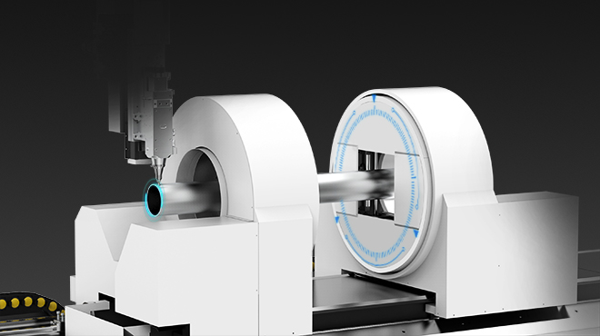 自主研發(fā)的伺服跟隨式支撐系統(tǒng),對(duì)各種管材可自定心,大小管全尺寸 都能勝任;高密度成組式支撐,承重性強(qiáng);能夠根據(jù)管材轉(zhuǎn)動(dòng)時(shí)的高度 實(shí)時(shí)調(diào)整高度,實(shí)現(xiàn)切割過(guò)程中的完美貼合,保證切割精度